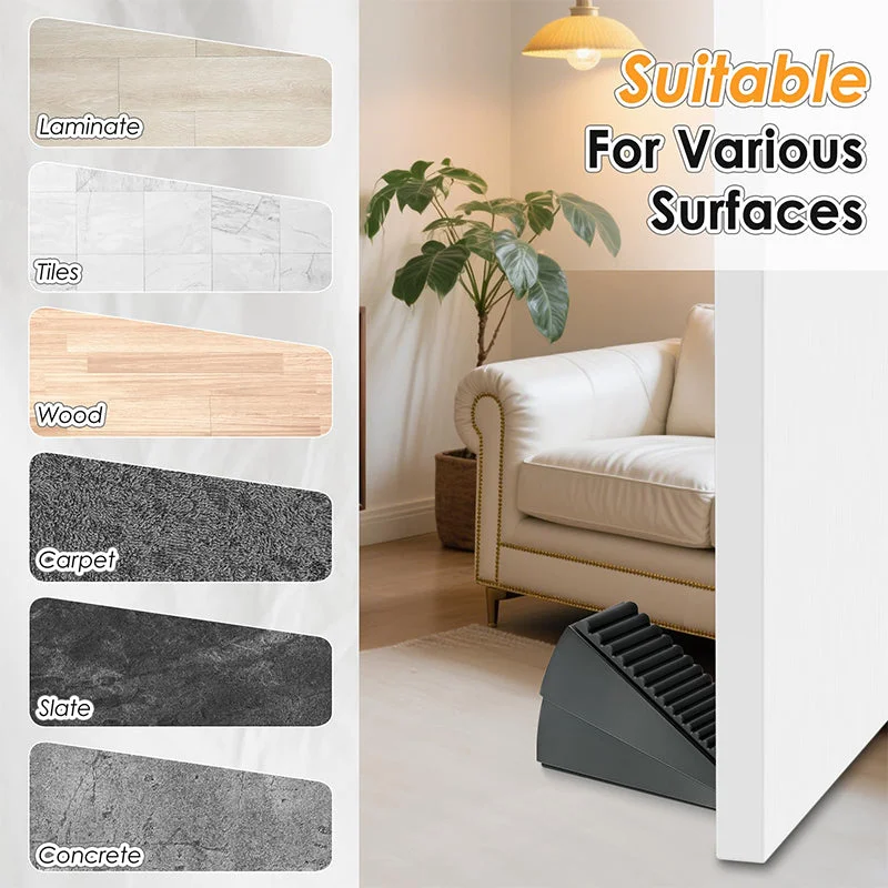 Excellently grip: Large door stopper suitable for any heavy commercial swinging door, metal door, double doors, safety door, self-closing hinged door and balcony doors with more space underneath, it is also suitable for glass door, carpet, wooden flooring or tile and it works fantastic.