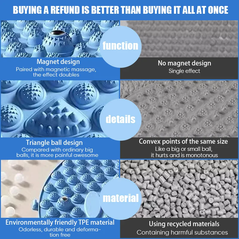 Manufacturer's Note: Choose wisely for your comfort: the nubs are made of hard plastic, not recommended for sensitive feet, but perfect for those who enjoy deep tissue shiatsu massage.