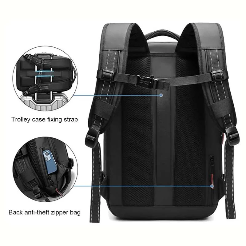 Anti-theft design: The main compartment of the vacuum seal backpack features a secure anti-theft password lock. Additionally, a hidden zipper pocket on the back helps safeguard your valuables from theft, providing extra peace of mind.
