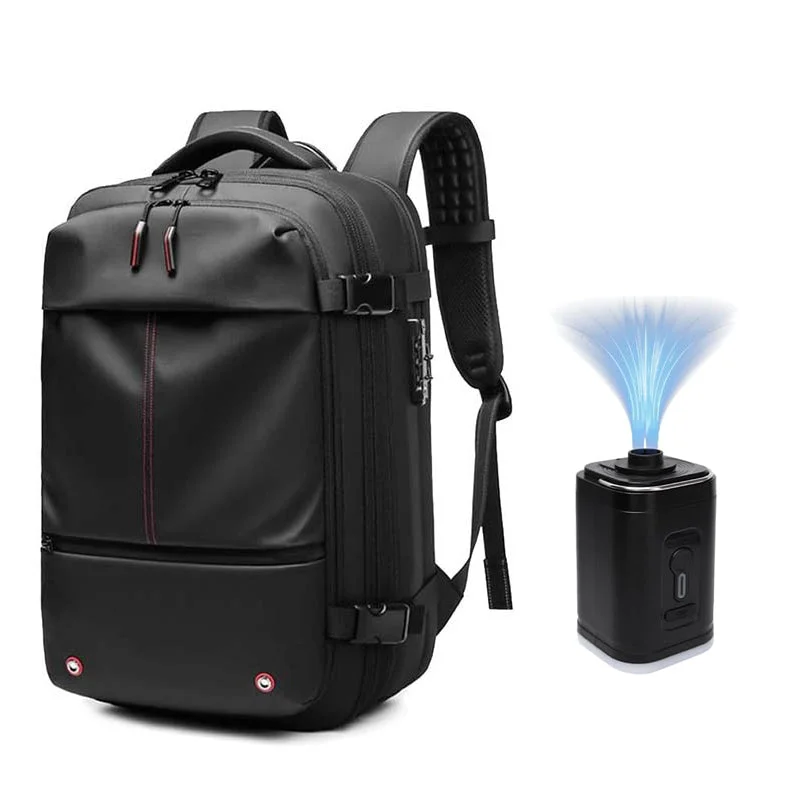 Vacuum backpack for travel: Equipped with a one-way valve, this vacuum backpack can be compressed quickly with our electric vacuum pump or manually by pressing to release air. The vacuum bags for travel reduce wasted space, maximizing your luggage capacity.