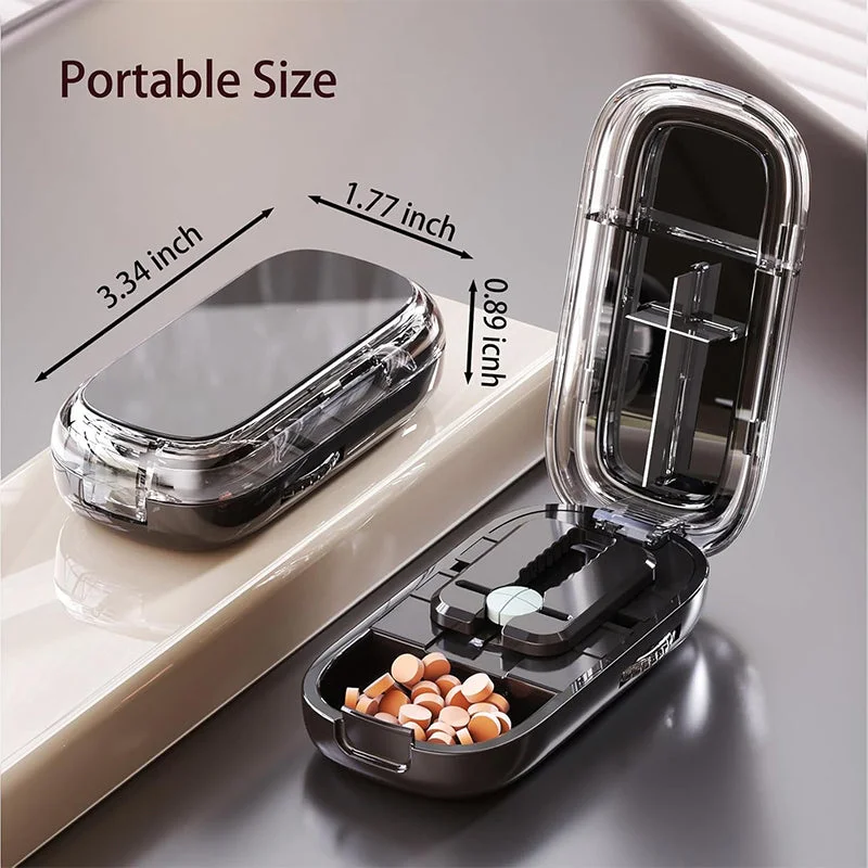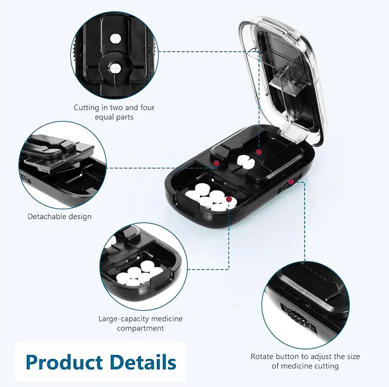 Clear cut: These silicone strips and slot of the pill cutter splitter buffer the squeeze for evenly cutting without crumbling. The silicone anti-skid pad of pill cutter prevents the drug from sliding around, improving the efficiency and integrity of cutting.