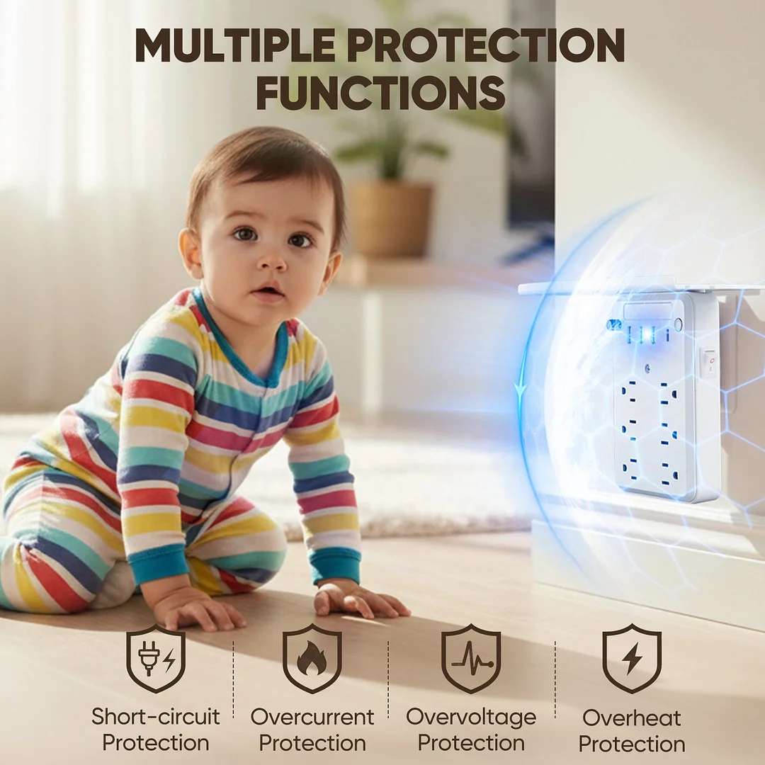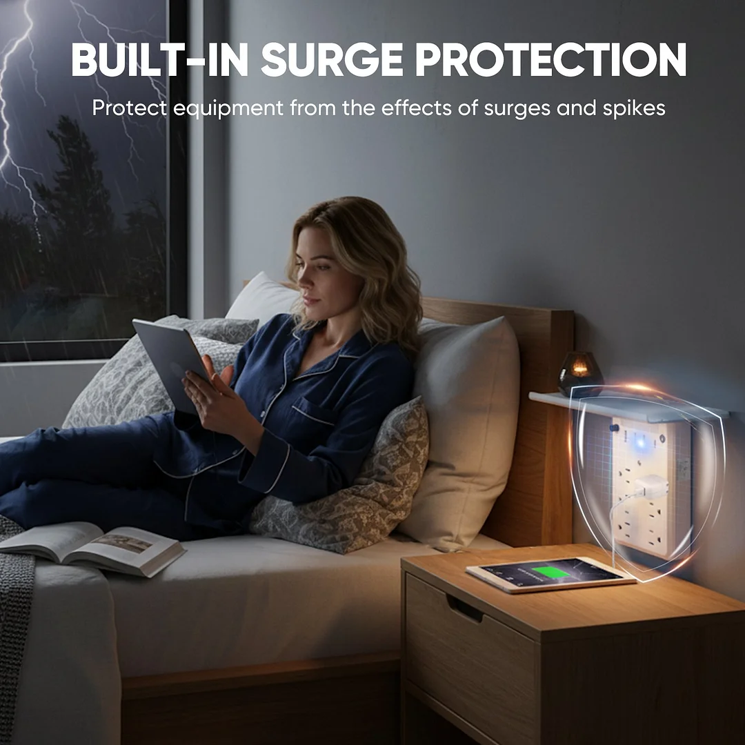 【Advanced Safety—Child Proof & Surge Protected】Built with overload protection, flame-retardant materials, and surge protection to keep your devices and family safe. Use with confidence from night until morning.