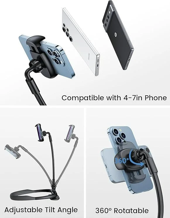Not just a neck phone holder: Our neck gooseneck phone holder is not limited to neck use alone; it is also suitable for desktop. You can place it on your bed or desk, thanks to the neckband's special structure that acts as a stable and large-diameter base, ensuring stability even on a soft quilt.