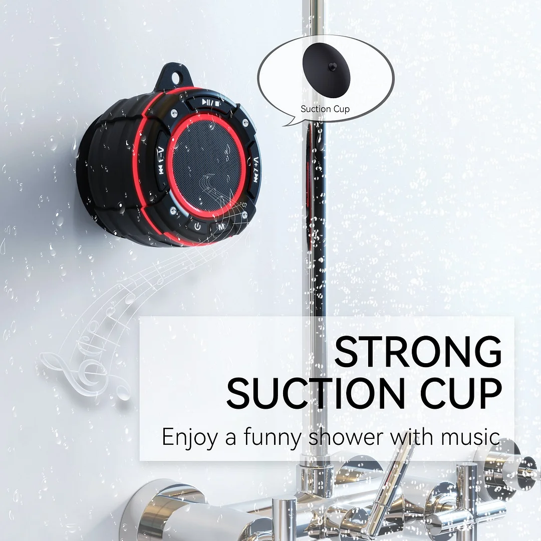 Strong Suction Cup for Hands-Free Use: With a strong suction cup, the speaker stays securely in place, allowing you to enjoy music hands-free in the shower or other wet environments.