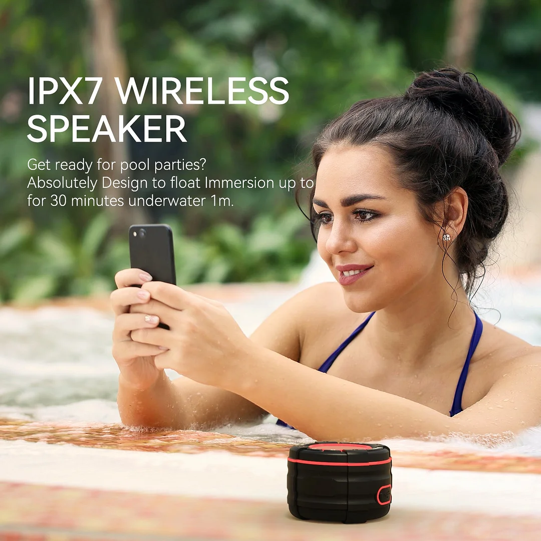 IPX7 Waterproof: With IPX7 waterproof rating, the speaker can float and withstand immersion in up to 1 meter of water for 30 minutes. Ideal for poolside fun, beach days, or even the shower.