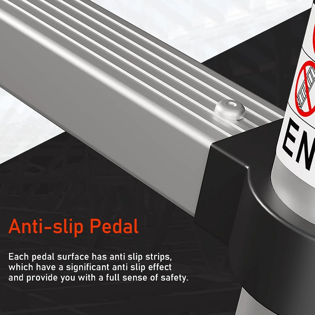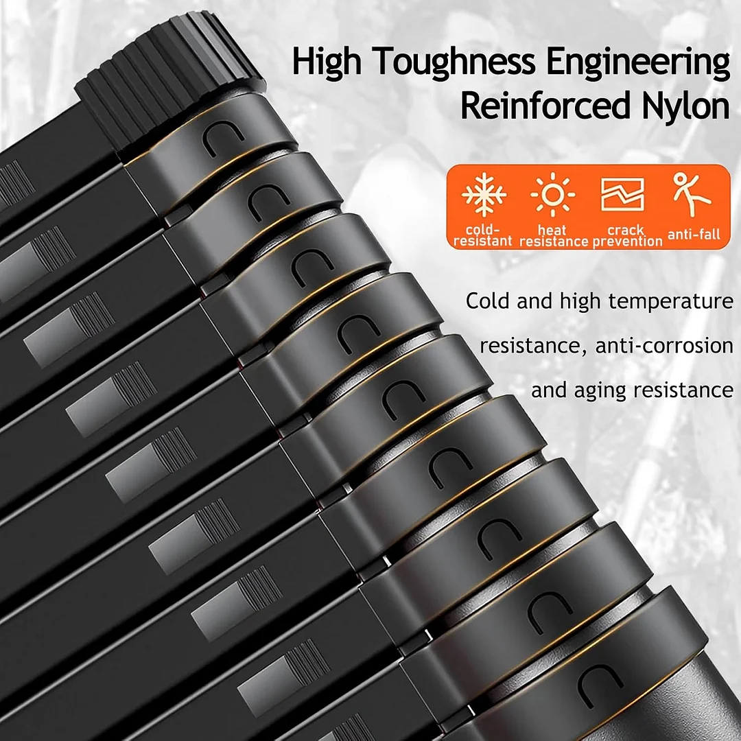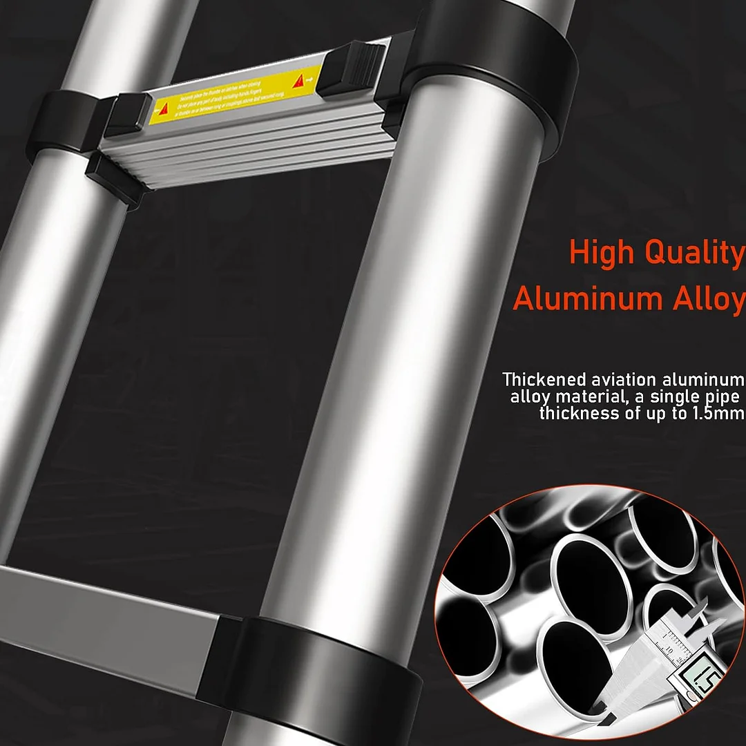Safe and reliable telescoping ladder: This telescoping ladder is made of aviation aluminum alloy with a hardness of 15 degrees, which is resistant to wear and rust, sturdy and durable. Each pedal surface has non-slip strips, and the foot of the ladder has anti-slip pads, providing you with a full sense of security.