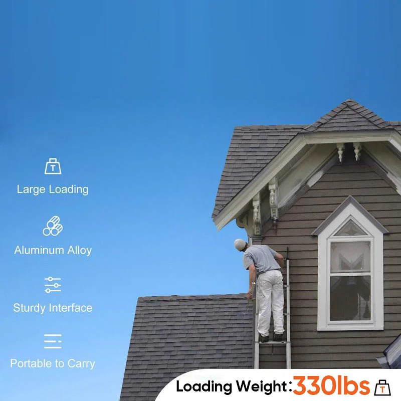 Multi-purpose use ladder: This extension ladder can be used for home/outdoor decoration, painting, roof repair, building maintenance, repairing lights, and can also be used as an attic ladder, RV ladder, loft ladder, roof ladder, etc. The collapsible ladder is a great helper for the family.