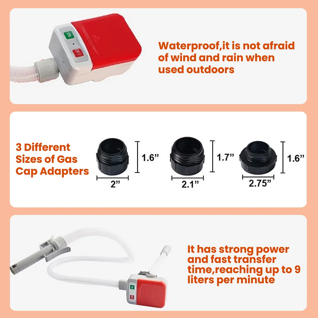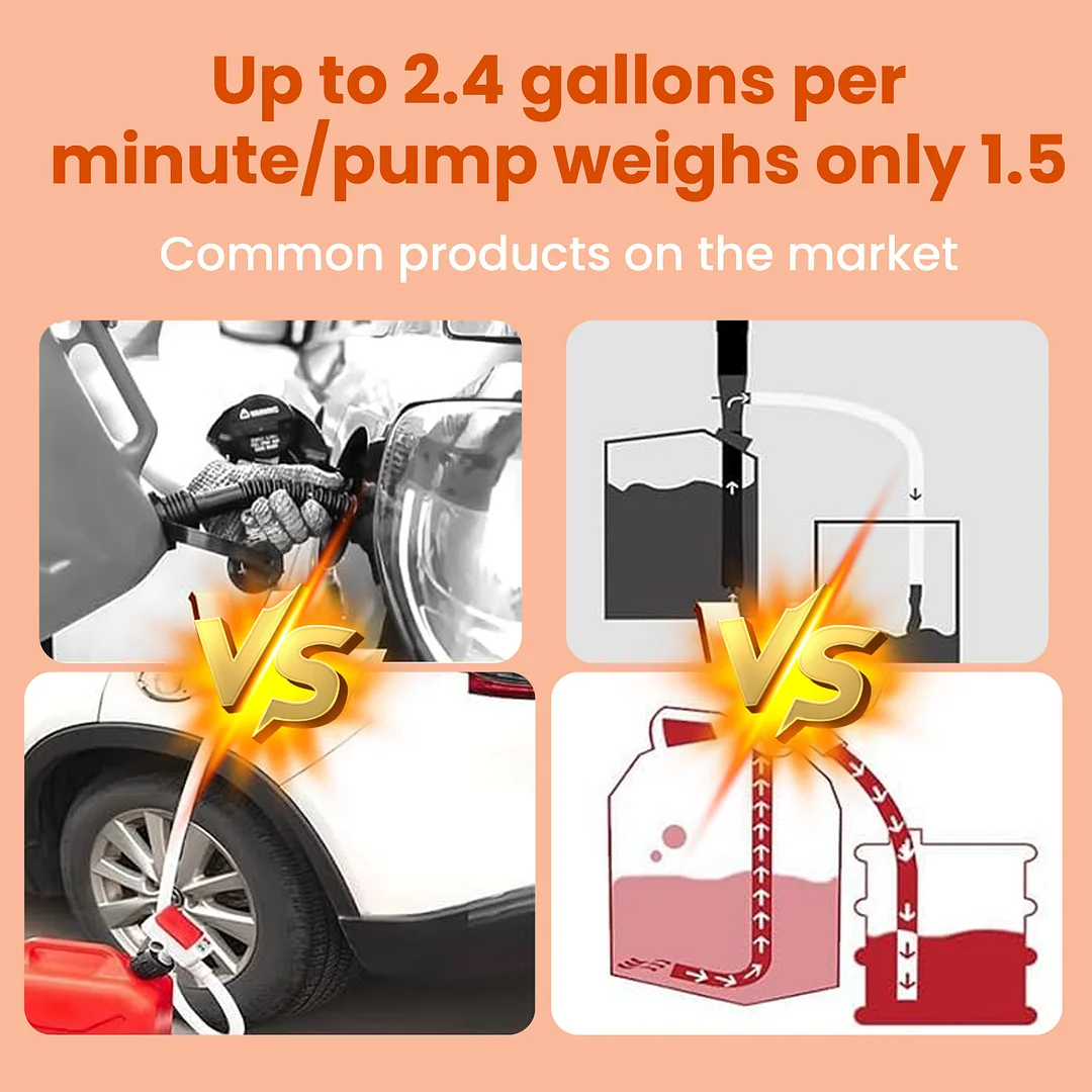 High-Speed Delivery: Portable fuel pump is battery-powered and delivers up to 9 litres of fuel per minute with minimal noise. Ideal for emergency fuel delivery, lawn equipment, and RV use.
