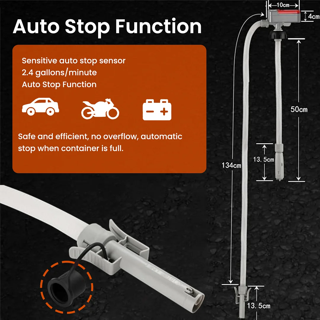 Auto-Stop Leak Protection: Saker portable fuel pump's advanced sensor instantly stops fuel flow when full, eliminating leaks and overflows. Ideal for gasoline, diesel, and oil transfers—safeguard your vehicle and storage.