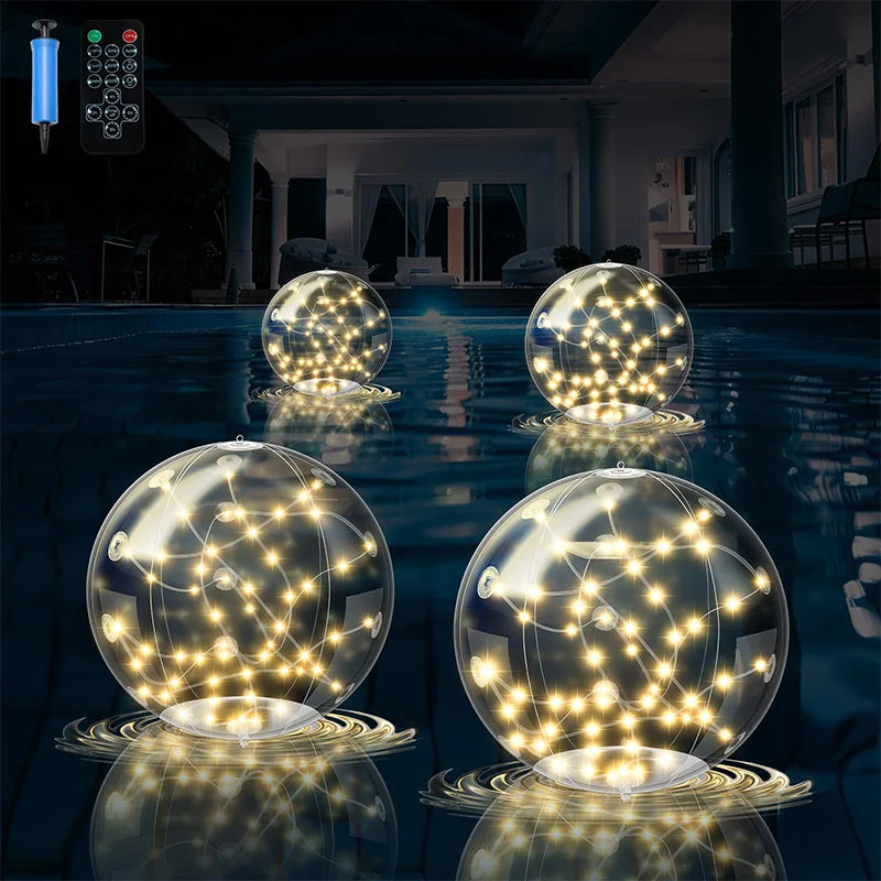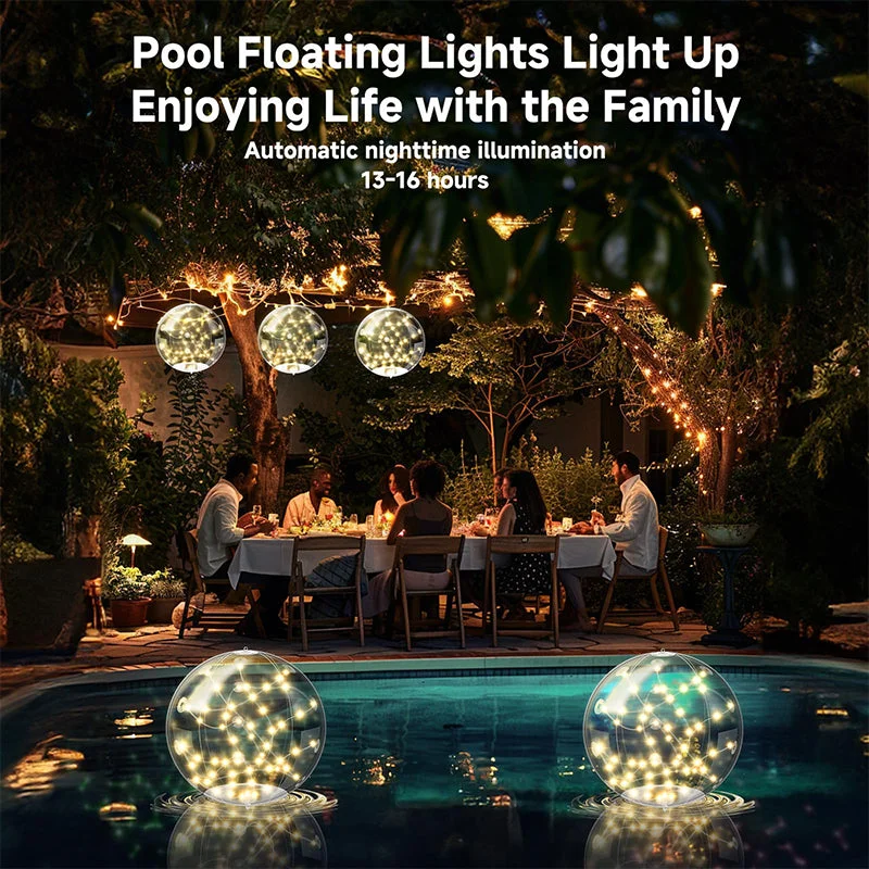 Charming ambiance lighting: Creates a beautiful nighttime atmosphere with warm fairy lights that float and glow all night, perfect for pools, gardens, or intimate gatherings.