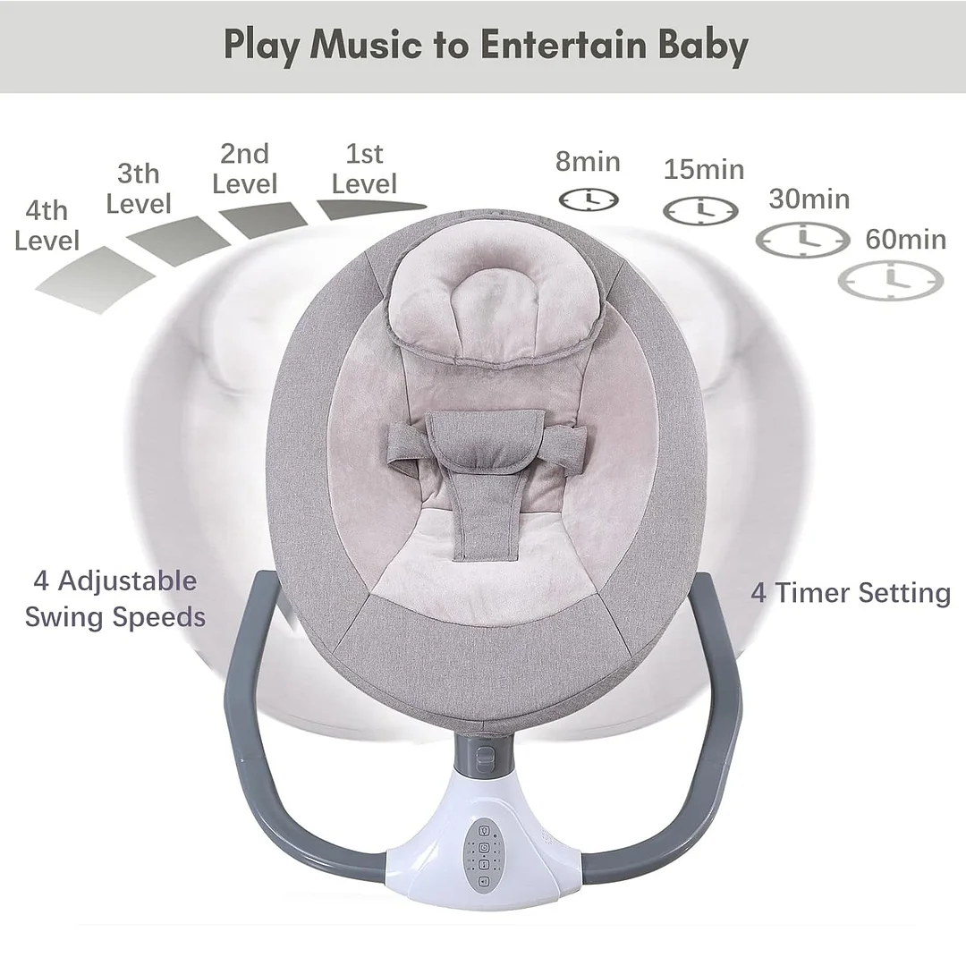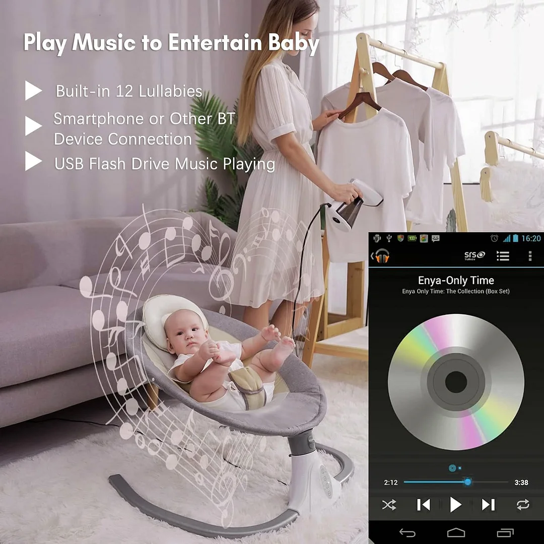 Customizable settings and entertainment experience: features adjustable rocking speeds, angles, and modes, along with Bluetooth music and USB connectivity, offering personalized soothing and entertainment for your baby.