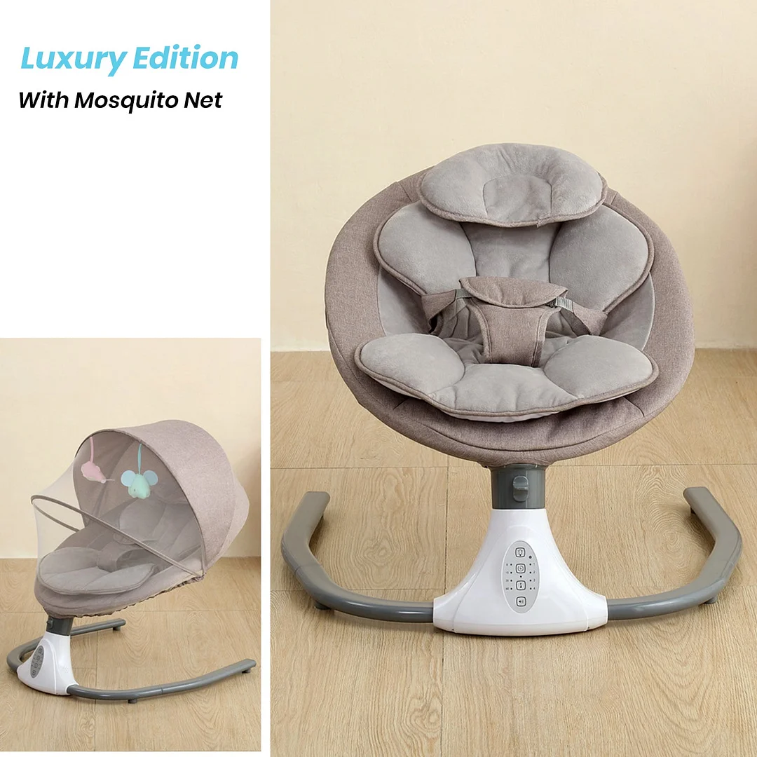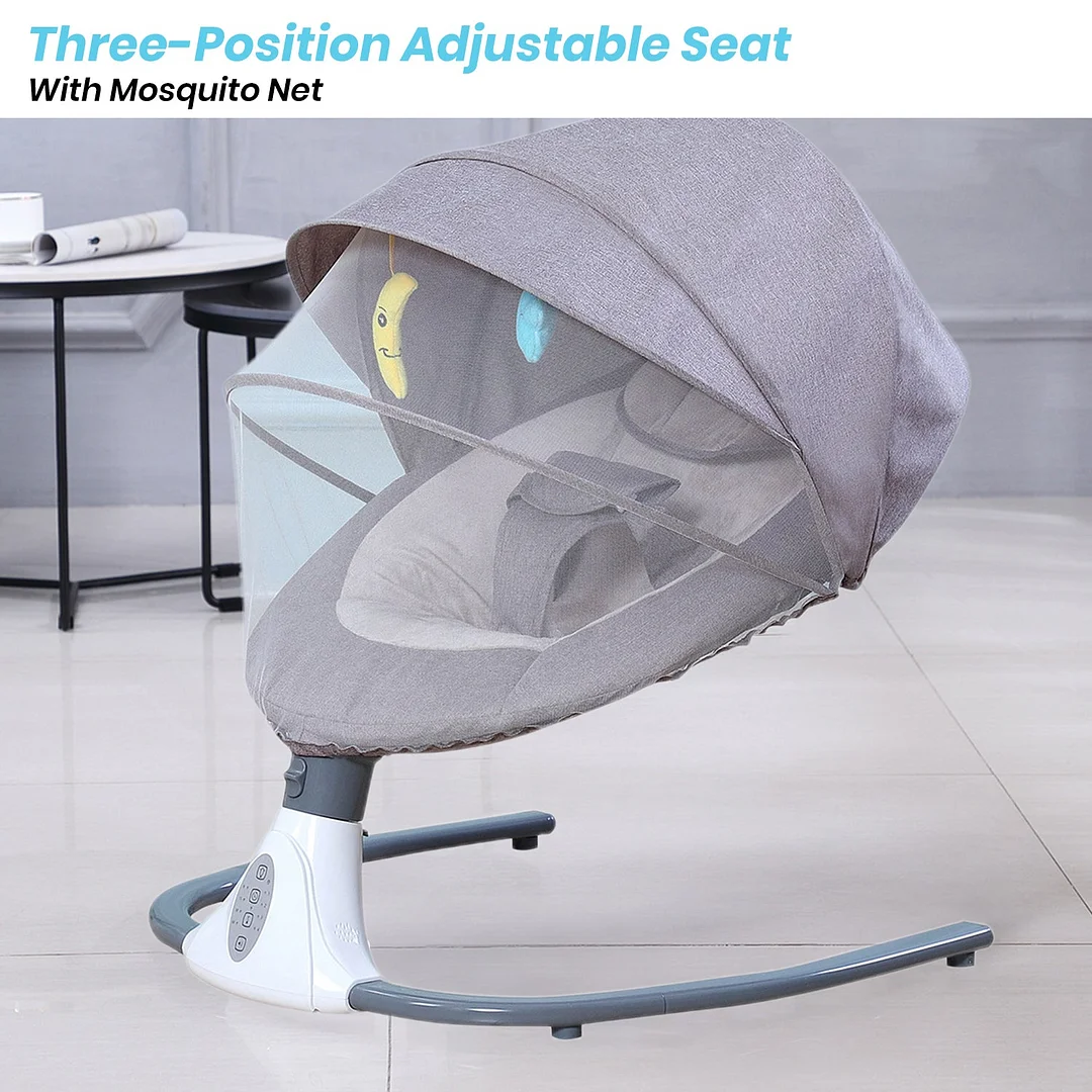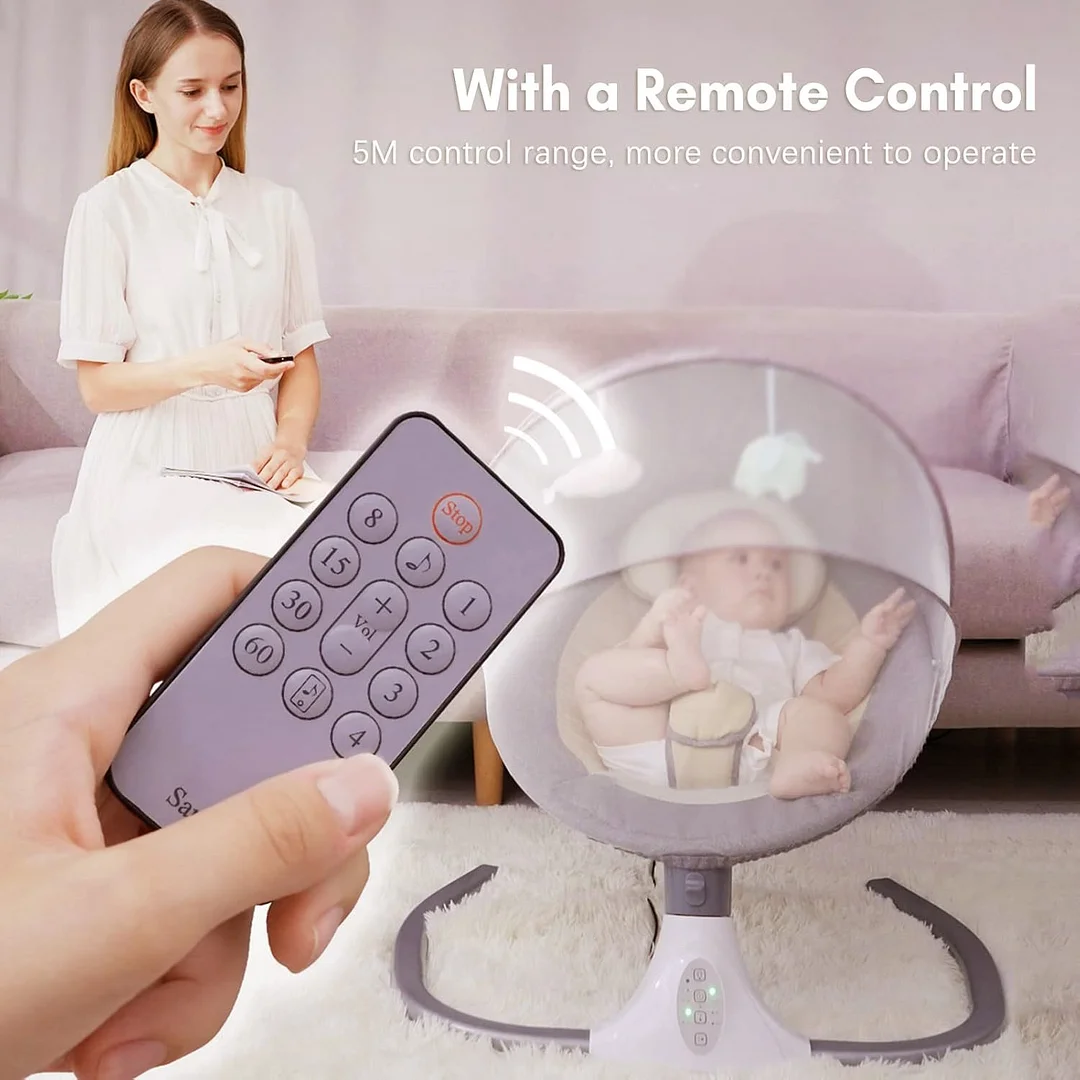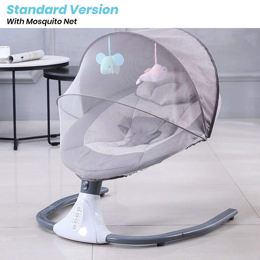 Effective mosquito protection and convenient operation: equipped with an integrated mosquito net to shield against insects, and a remote control for adjusting rocking speeds and functions from a distance, allowing parents to multitask effortlessly.