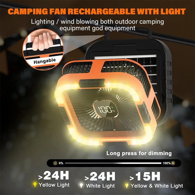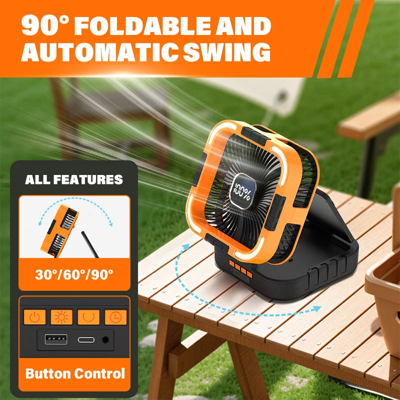 Dual-purpose power: Equipped with a 10,000mAh battery and USB output, it functions as both a fan and a power bank for charging devices.