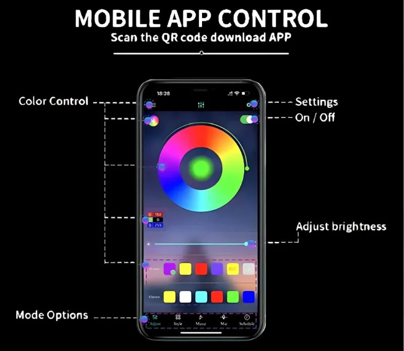 Customizable lighting via smartphone app: Take full control over your car's ambiance with the app-controlled lighting system. Adjust the brightness, color, and effects to suit your mood, whether you prefer a soothing glow or a vibrant, party-ready vibe.