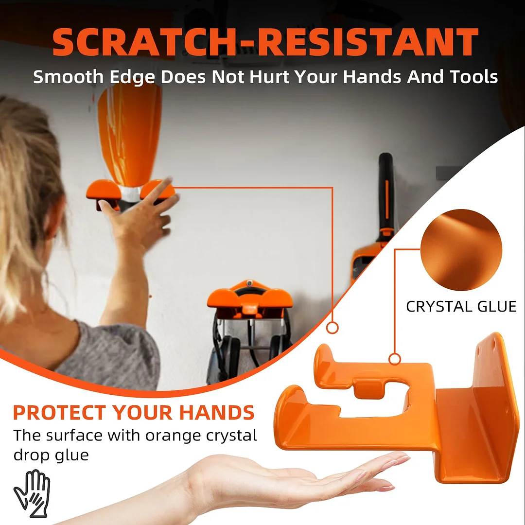 Tool holder for multiuse: Heavy duty hangers wall mounted grass trimmer rack sturdy and stand wear and tear, this is an excellent garage storage solutions. Install it, it can hold up to various tools in your garage or yard. Like garden power tool and hedge trimmer.