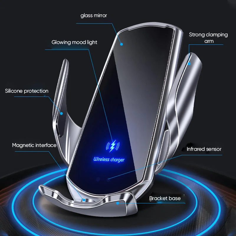 🚗【 WIRELESS CAR CHARGER BRACKET】Interesting wireless car charger mount. New wireless car charger mount auto clamping. To using navigation while driving, It is easy to hold your phone. If your phone supports wireless charging,Directly charge on the car wireless charging stand. please do not use the magnetic head to charge your phone.