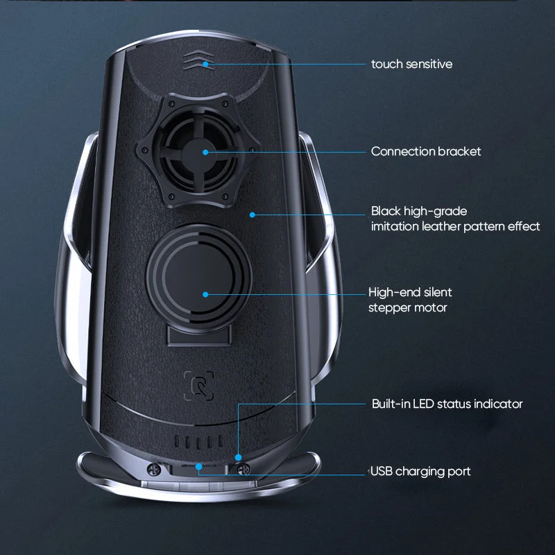 🚗【INTELLIGENT AUTOMATIC SENSING】Phone car mount wireless charger adopted smart gravity sensor technology. One hand can operate. Place your phone inside the car bracket charger, The clamps will close and provide a strong stable hold. Just touch the sensing area and the arms would automatically open can you take the phone outyou just need to put phone on the car mount wireless charger.