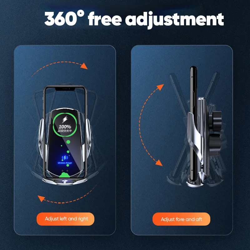 🚗【ONE-HAND OPERATION】The car phone holder mount wireless charging 360 Degree rotating ball helps you to find the most suitable angle for safe driving. Put the phone close to the vent mount wireless charger, the infrared sensor at the bottom will release the clips automatically and clamp the phone tightly.