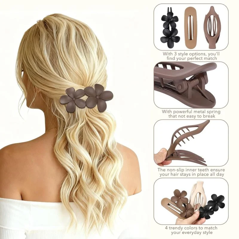 3 styles, 12-pack value set: You will receive a versatile set of 12 clips including four French concord flat hair clips, four flat claw clips, and four flower hair pins. With a mix of minimalist and floral designs, these clips suit daily wear, travel, work, beach days, parties, weddings, or festivals while combining practicality and style.