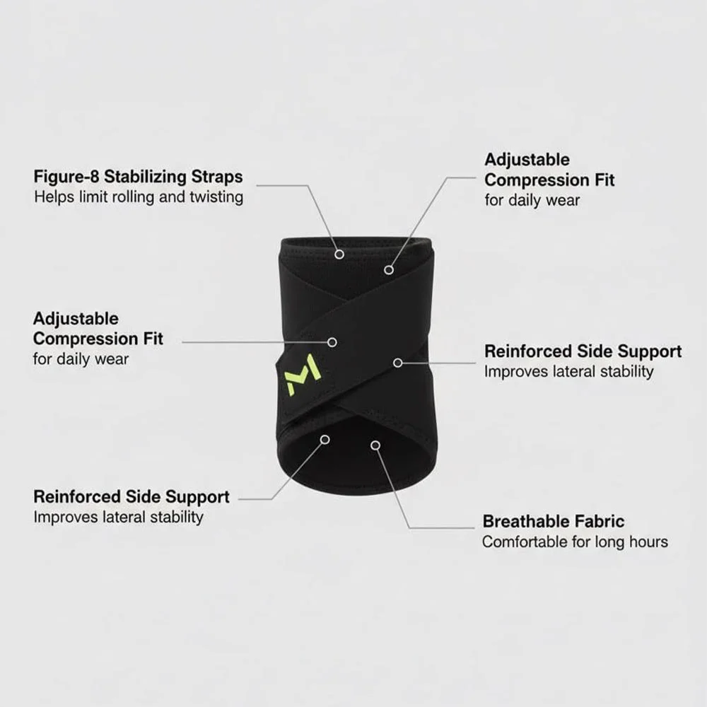 Secure: Fit inside shoes: Figure-8 strap ankle stabilizer offers firm lateral support while fitting comfortably in most shoes, with durable breathable materials for all-day wear and adjustable left or right foot use.