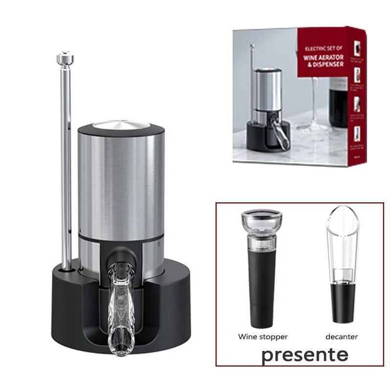 Adjustable stainless steel tube: Install the tube under the wine dispenser machine, then adjust the length of the tube and put into the wine bottle. Just push the button to aerate and pour your wine. Enjoy the luxurious wine set.