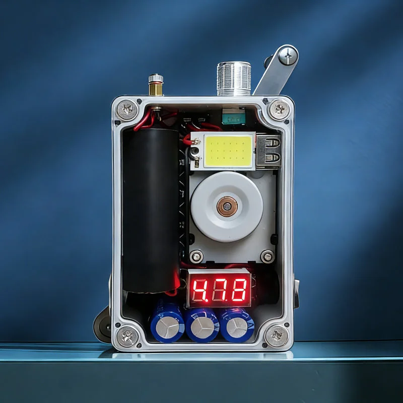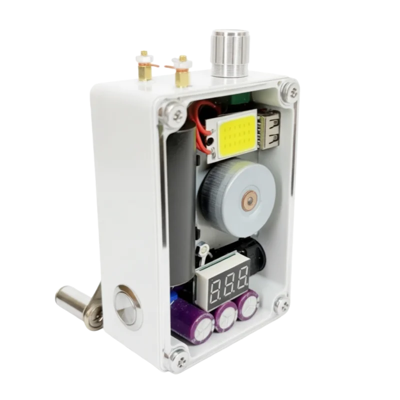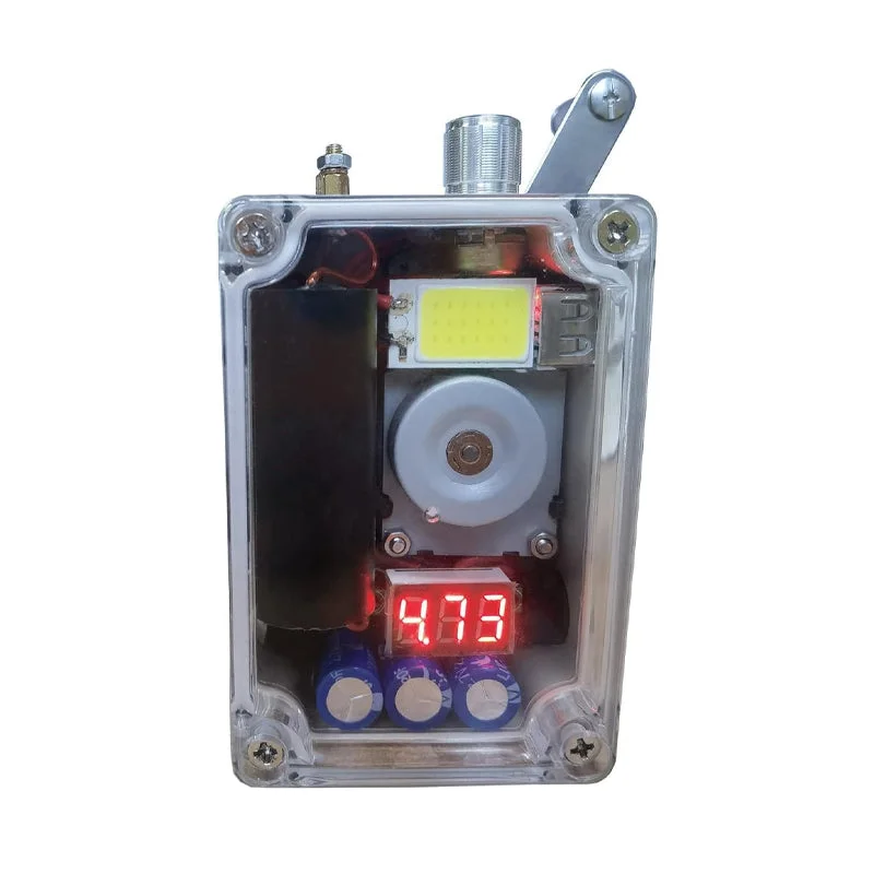 Portable generator: Portable hand-cranked power generator that can be used as a rechargeable emergency power source to manually power a variety of electronics.