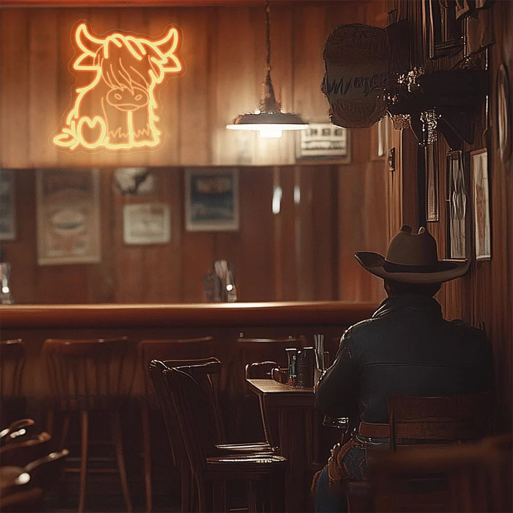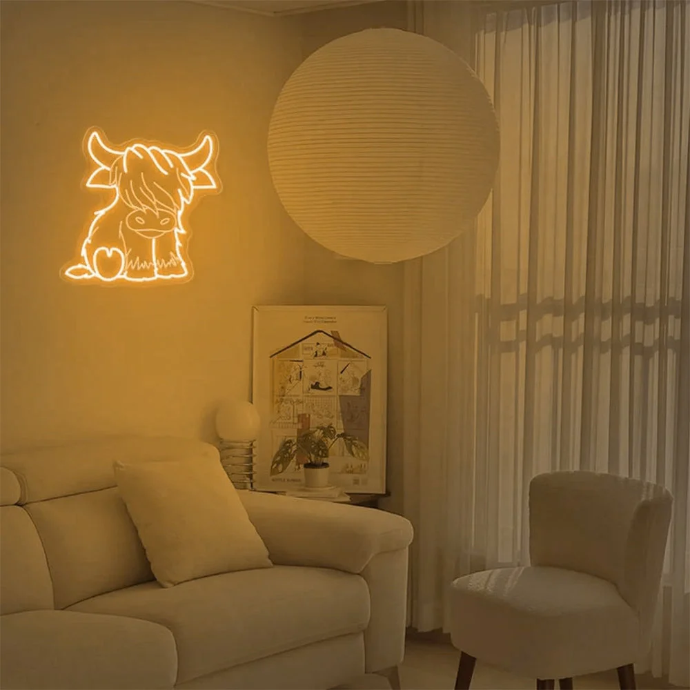 Unique decor piece: Whether you're looking to add a playful accent to your home or create a cozy atmosphere in a cafe or bar, this Highland cow neon sign is a delightful and unique decor choice.