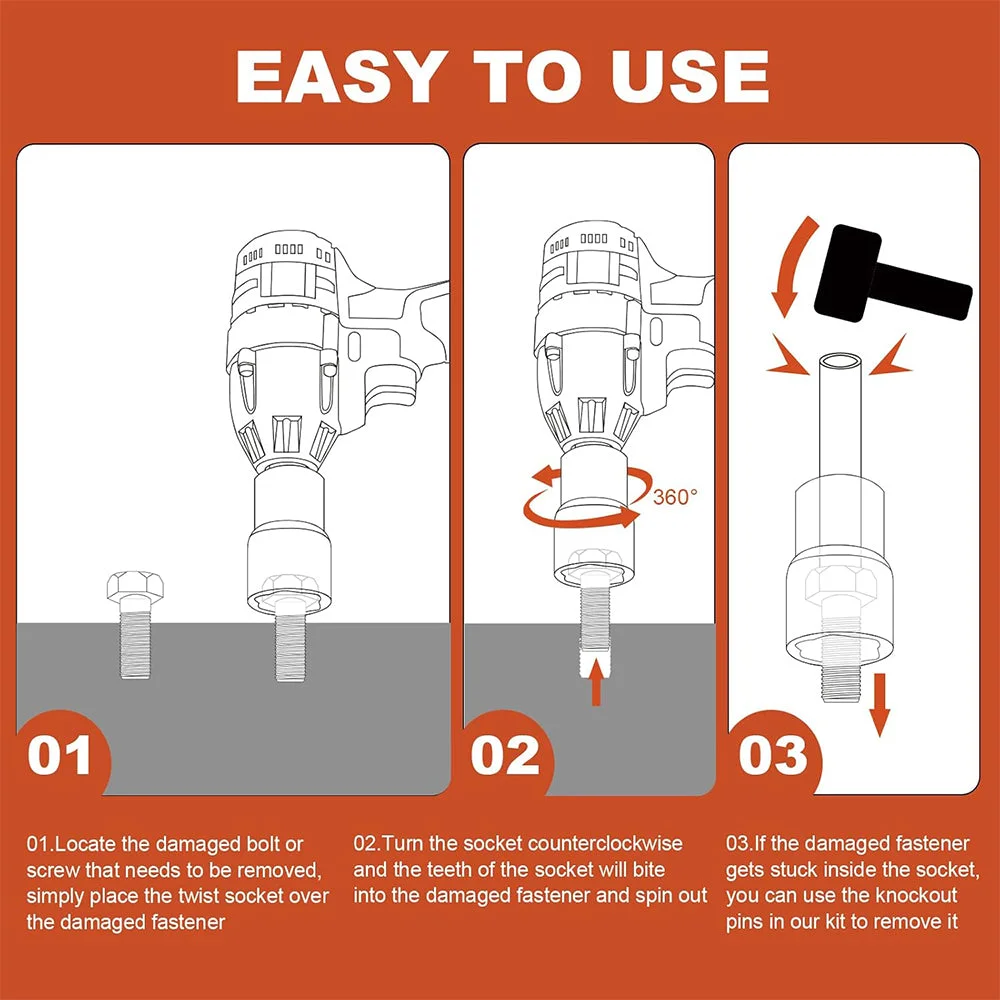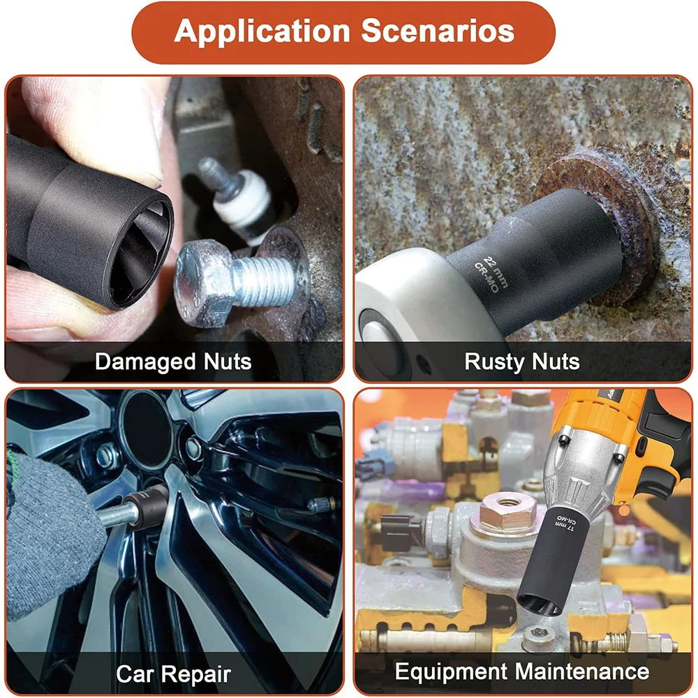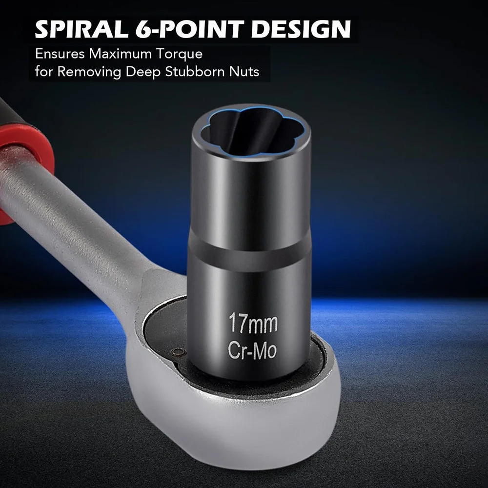 Designed: Designed For Damaged Lug Nuts And Bolts. Removes Stripped, Rounded, Or Rusted Lug Nuts And Bolts In 17mm, 19mm, 21mm, And 22mm Sizes.