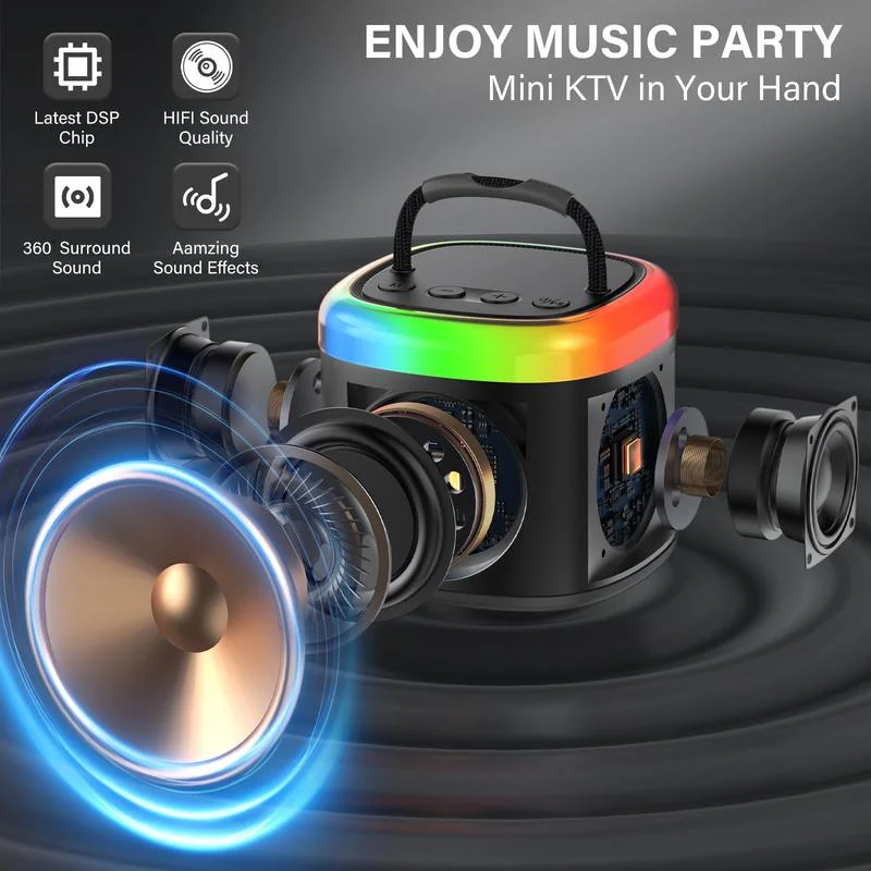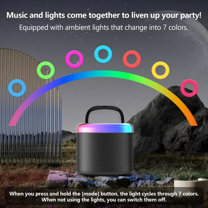 Funny voice change & led lights: With 4 kinds of magic sound, including original, KTV, monster and female voice, this Bluetooth party speaker provides endless fun for kids. Dynamic dancing lights enhance the atmosphere and fill your party with joy and energy.