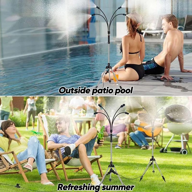 Powerful cooling performance: With 5 precision misting nozzles, it can reduce surrounding air temperature by up to 20°F, making it perfect for patios, gardens, BBQs, or sports.