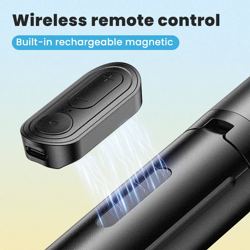 Larger & more stable base: The cell phone tripod base uses a stable triangular structure. Please note the tripod should be placed on a flat surface. The folding design of the selfie stick tripod with remote is highly portable, allowing you to easily carry it in your backpack or suitcase when traveling.