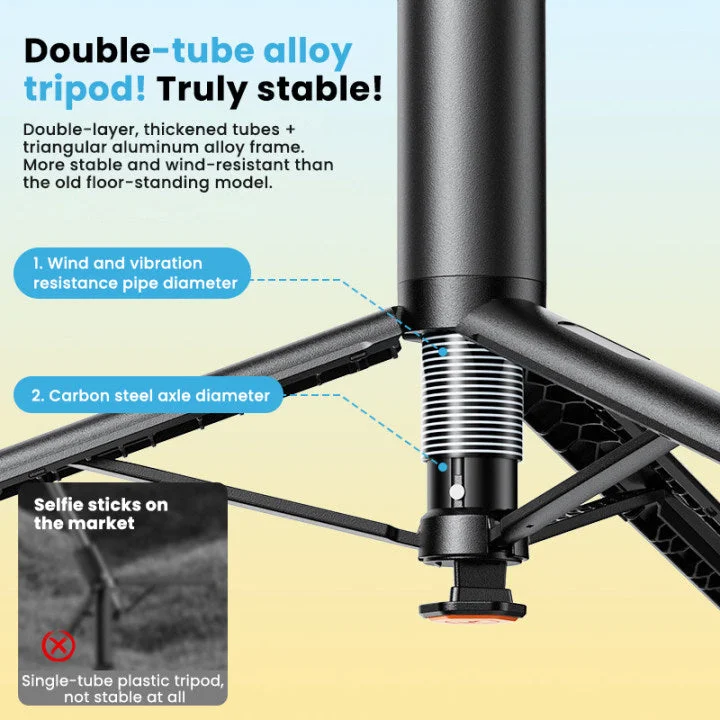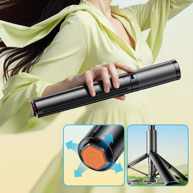Automatic pop open: This innovative tripod for cell phone is designed with automatic pop opening. When the tripod stand hits the ground (or other flat surface) in a vertical drop, its three legs will pop open automatically. Compared with ordinary tripods, this auto tripod can be opened quickly and automatically when in use, no need to open the three legs manually, saving time and making it easy to use.