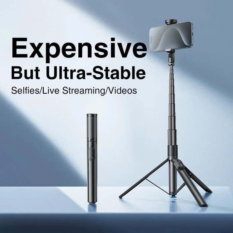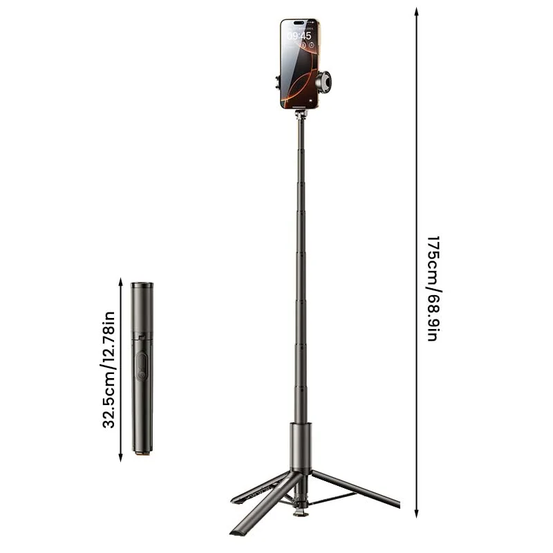 Maximum height of 66": Featuring a 10-section telescopic pole with a maximum height of 66"/168cm, this selfie stick tripod for phone can capture a wider perspective and bring a different visual experience. The telescopic pole is made of aluminum alloy, which is wear-resistant, corrosion-resistant, and suitable for use in humid environments.