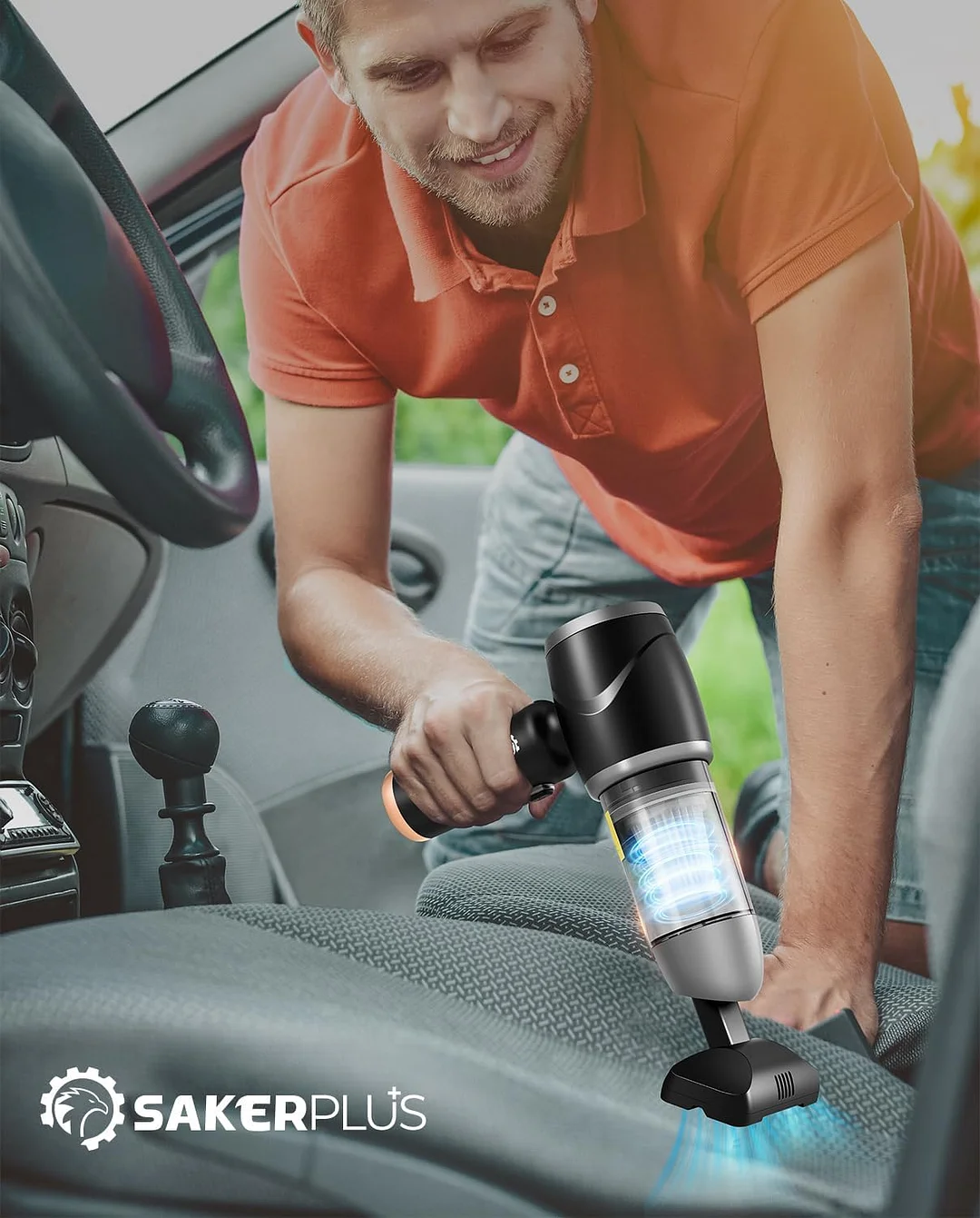 【Brushless Motor】 Experience unrivaled cleaning efficiency with the SakerPlus Handheld Vacuum, featuring a cutting-edge brushless motor. Enjoy robust suction, extended battery life, whisper-quiet operation, compact portability, and enhanced durability—all in one sleek package!