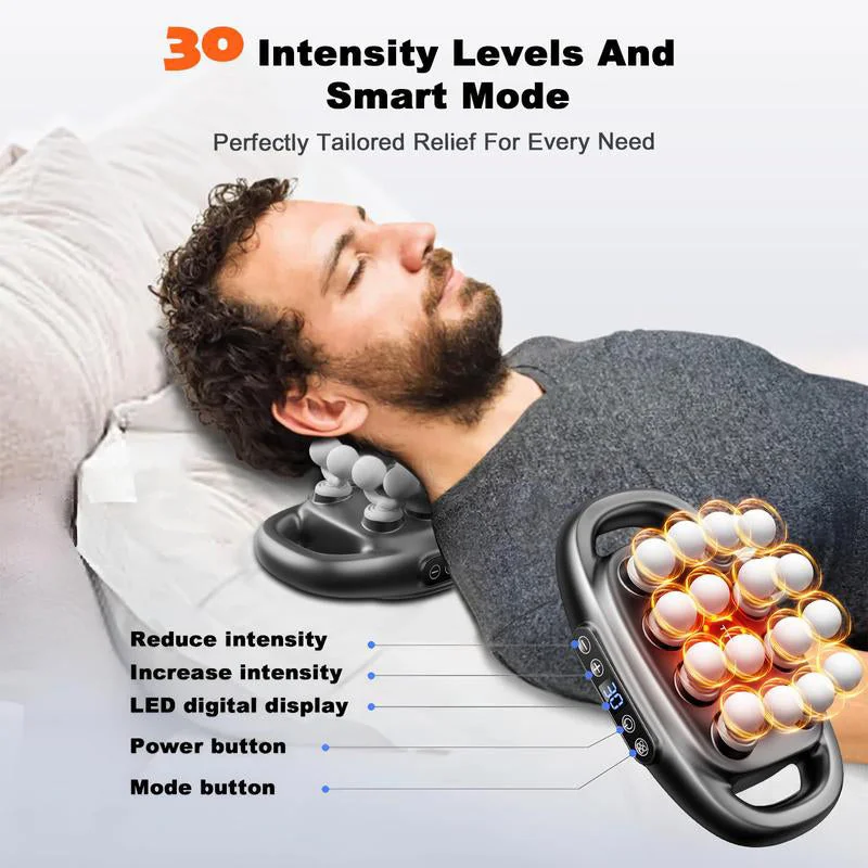 Versatile treatment modes: Our back massager with 30 intensity levels and intelligent adjustment options, 1-6 fascia relaxation, 7-13 muscle awakening, 14-20 deep fatigue relief, 21-30 professional massage, this muscle massage gun can effectively target specific muscle groups.
