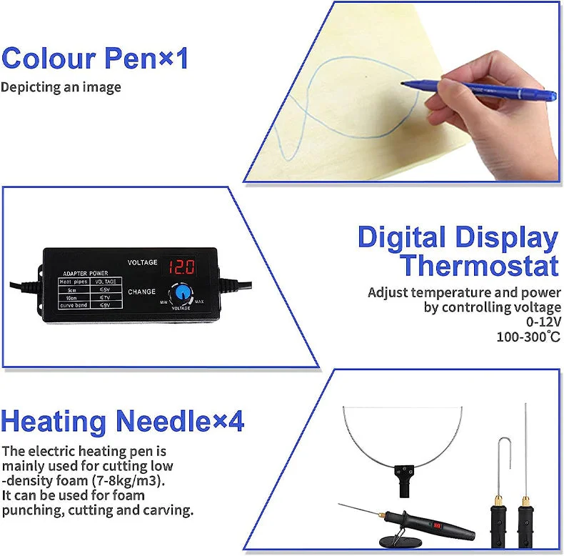 Premium quality: This electric styrofoam cutting tool is suitable for novices. Its handle is ergonomically designed, and its heat-resistant temperature can reach 300℃, making it friendly for both beginners and professionals. The anti-slip design on both sides of the handle provides excellent control and minimizes hand fatigue. It is an indispensable tool for foam cutting and engraving.