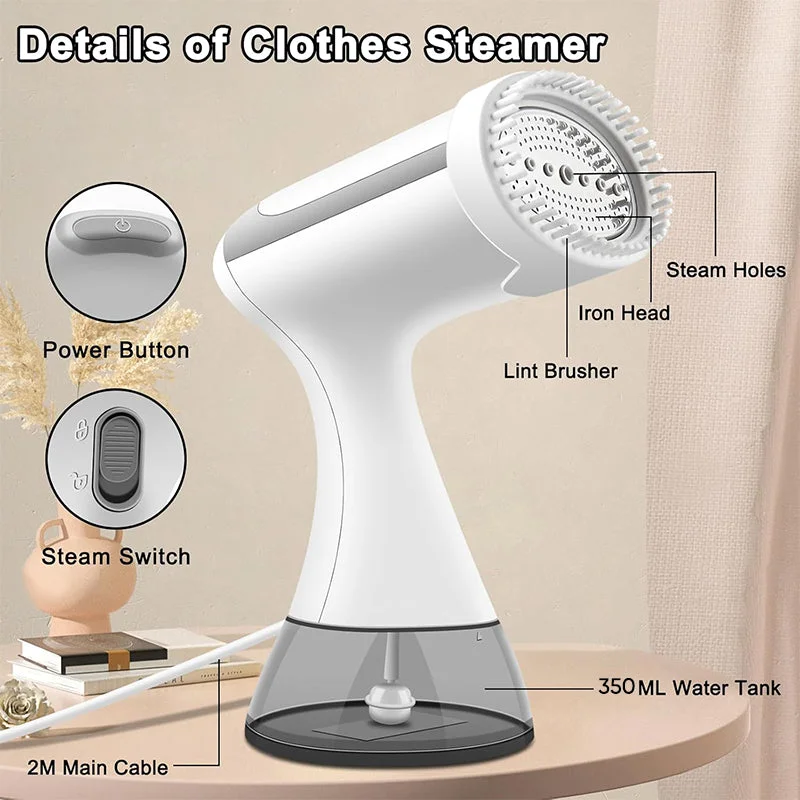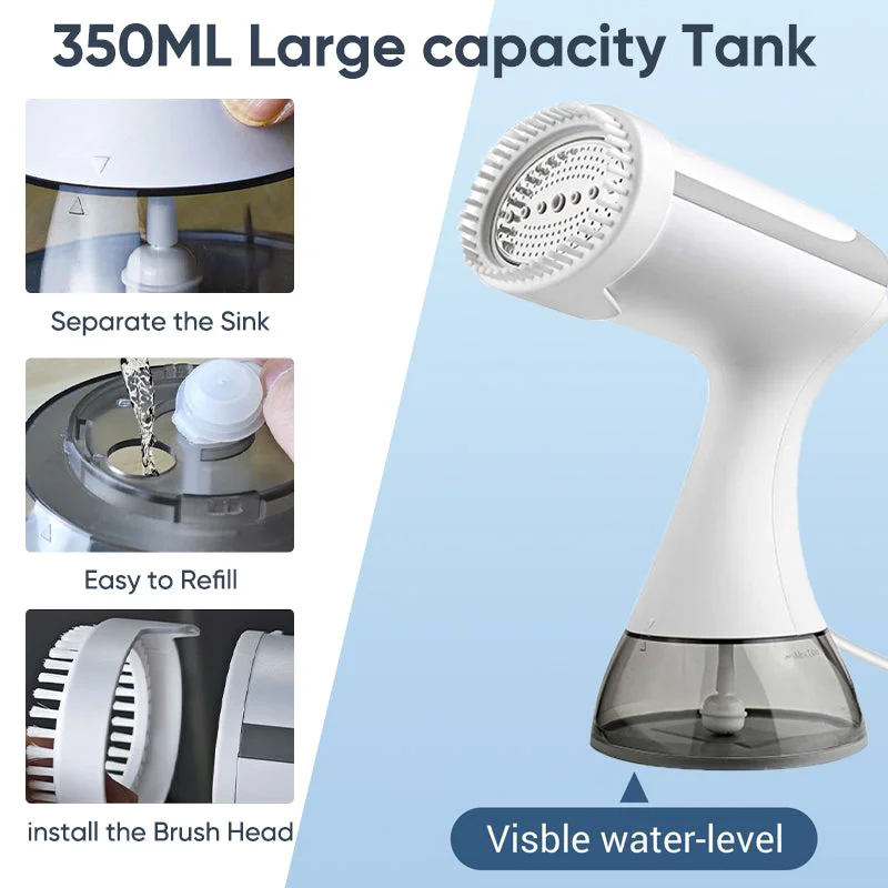 350ml large water tank: With a 350ml water tank, this clothes steamer delivers 22 minutes of continuous steam, handling up to 15 garments per refill. Perfect for quick touch-ups or long ironing sessions, it ensures efficient, uninterrupted steaming for all your fabric care needs.