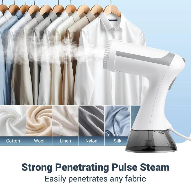 Versatile fabric compatibility: Our garment steamer smooths wrinkles on various fabrics like cotton, linen, polyester, chiffon, wool, silk, and more, making it perfect for all clothing needs. It also revitalizes home textiles, including curtains, sofas, carpets, and bedding, providing a clean, fresh appearance with minimal effort.