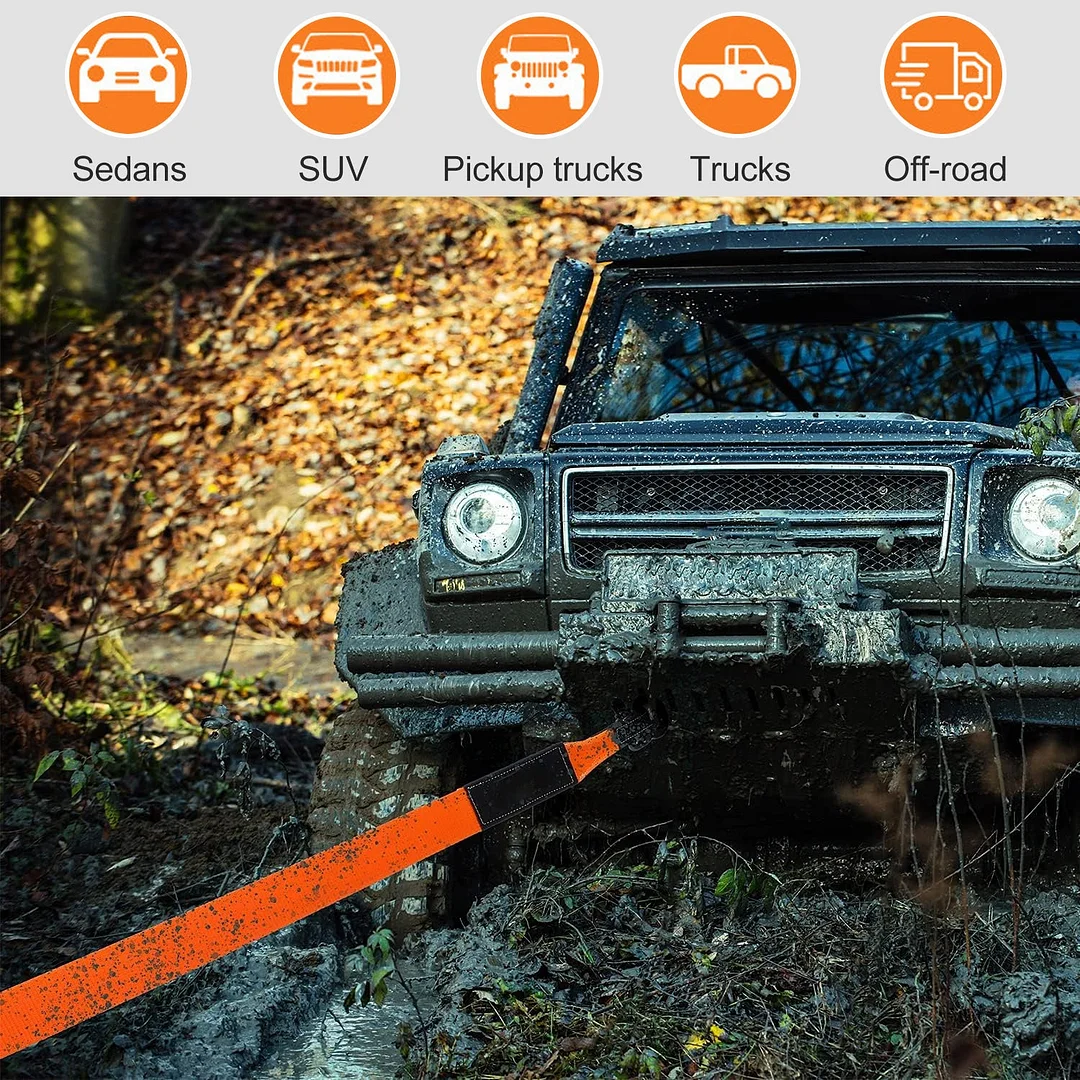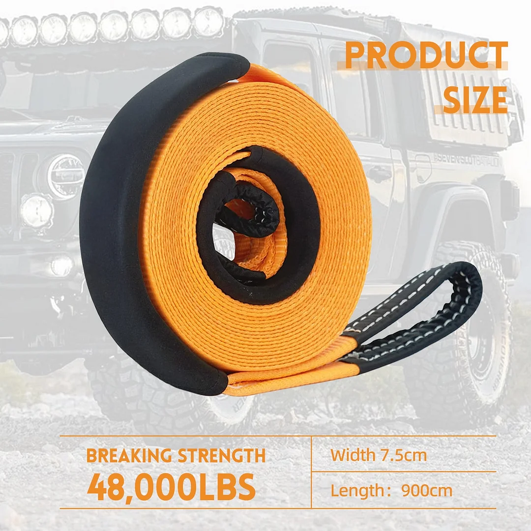 Worry-free design: Certified 35,000 Lbs break strength allows you to recover nearly all stuck vehicles and even semi trucks. Features include triple reinforced eye loops and neoprene protective sleeves. With this Recovery Strap, you do not need to check work load limit or safety factors, only ensure the stability of recovery points.