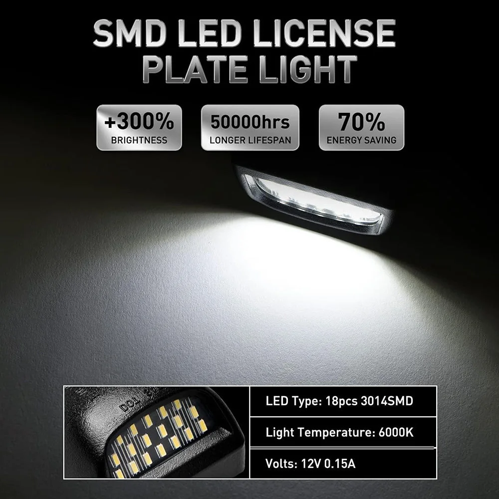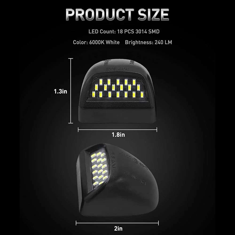 Extremely bright: Each lamp has 18 SMD 6,000K white 3014 LED chips. 300% brighter than your factory license plate lights, maximize the rear end illumination but no blindness to the backup camera.