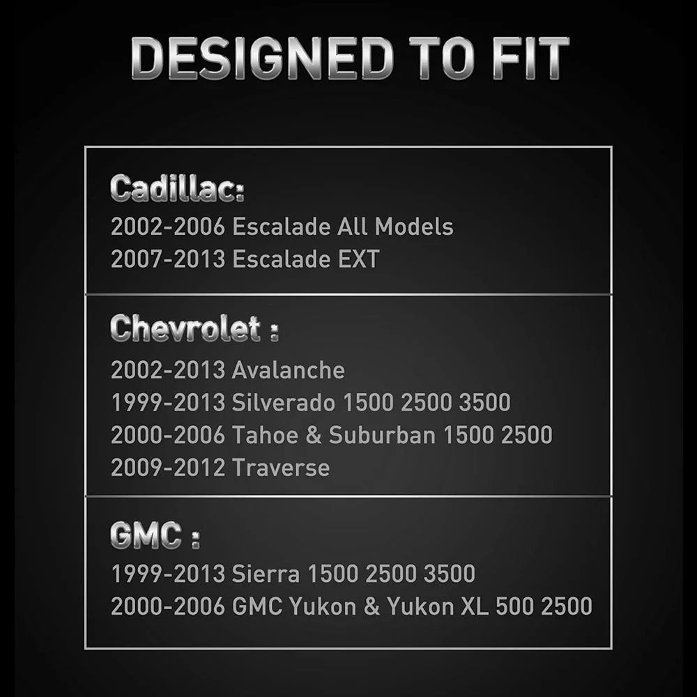 Compatibility: Compatible with Silverado 1500 2500 3500, Suburban Tahoe, Avalanche, GMC Yukon/Yukon XL, etc. (For more details, please refer to the description.)