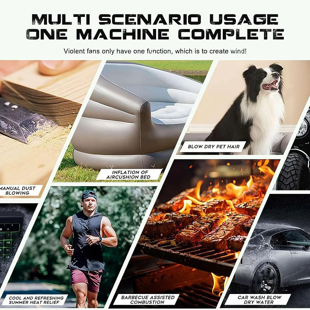 Multi-Functional Use: Ideal for dust cleaning, leaf blowing, BBQ maintenance, and car drying, making it a versatile tool for various applications. It is convenient for storage and easy to transport.