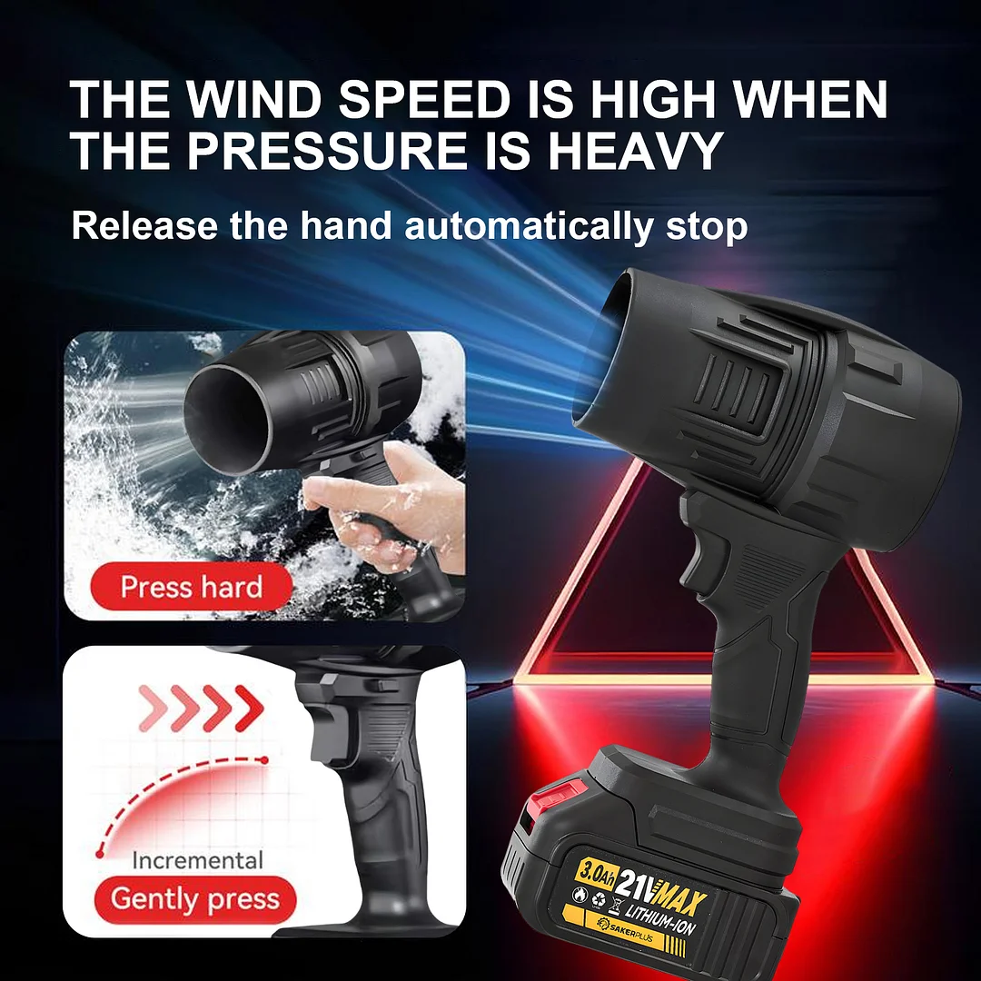 Two-Speed Settings: Easily switch between two speed modes with a hard press for strong wind and a gentle press for low speed, offering versatility for different tasks.