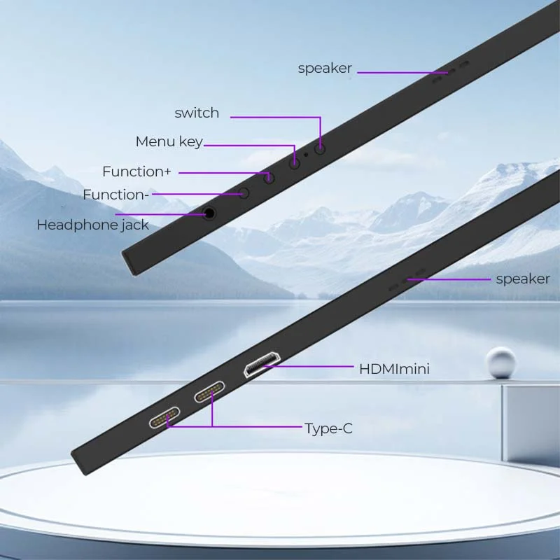 Versatile connectivity: Equipped with 2 full-feature USB-C ports and 1 mini HDMI port, it supports plug-and-play use with most modern laptops—perfect for expanding your screen anytime, anywhere.