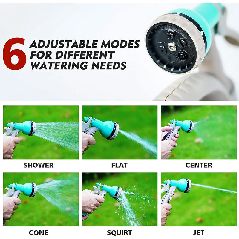 Versatile Spray Patterns for All Tasks: With 6 spray patterns, this retractable hose reel is suitable for garden watering, car washing, and more. Comfortable, ergonomic, non-slip handle. Release to stop the water, safe and energy-saving. The portable switch is easy to operate. Quickly switch between patterns for efficient use.