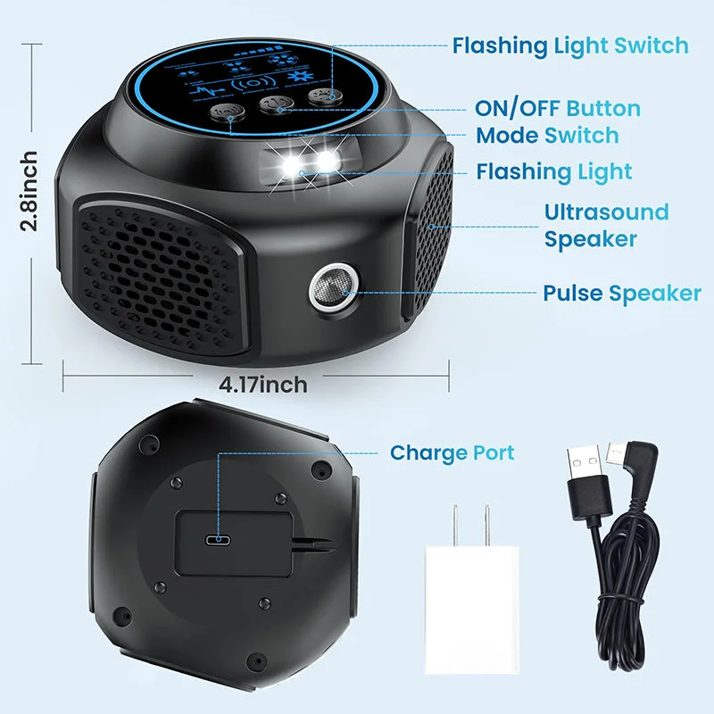 Safe for Humans and Pets: Emits 25–65KHz sound waves that are non-toxic, chemical-free, and completely harmless to children and household pets.