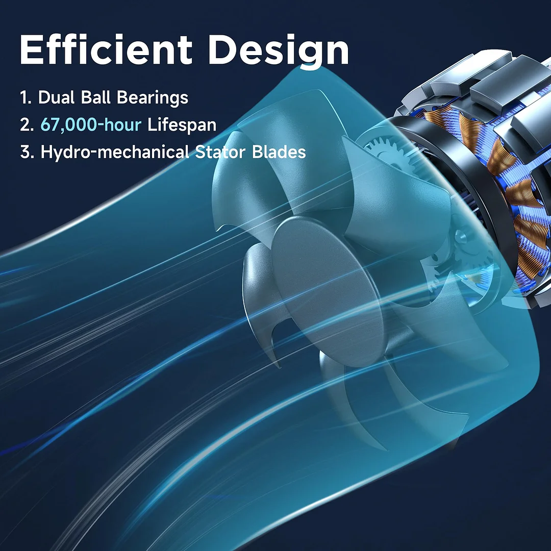 Quiet long-lasting motor: Dual ball bearings ensure ultra-quiet operation and a lifespan of up to 67,000 hours—ideal for bedrooms or quiet spaces.