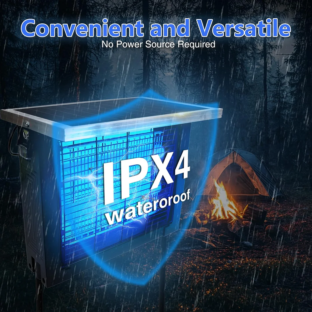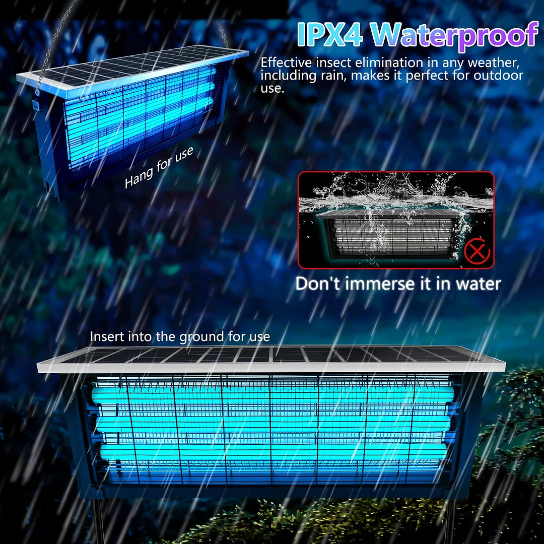 Weatherproof: With an IPX4 waterproof rating, this bug zapper is built to perform in any weather—even in the rain—making it the perfect solution for year-round outdoor use. Whether you choose to hang it up or insert it into the ground, it offers flexible placement to suit any space. Just remember: do not immerse in water. Durable, reliable, and easy to use, it's your go-to defense against mosquitoes in any environment.