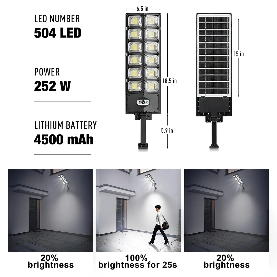 Super bright illumination: Equipped with 12 arrays of 504 LEDs, this light casts a powerful 12,000 LM glow, brightly illuminating your outdoor spaces.
