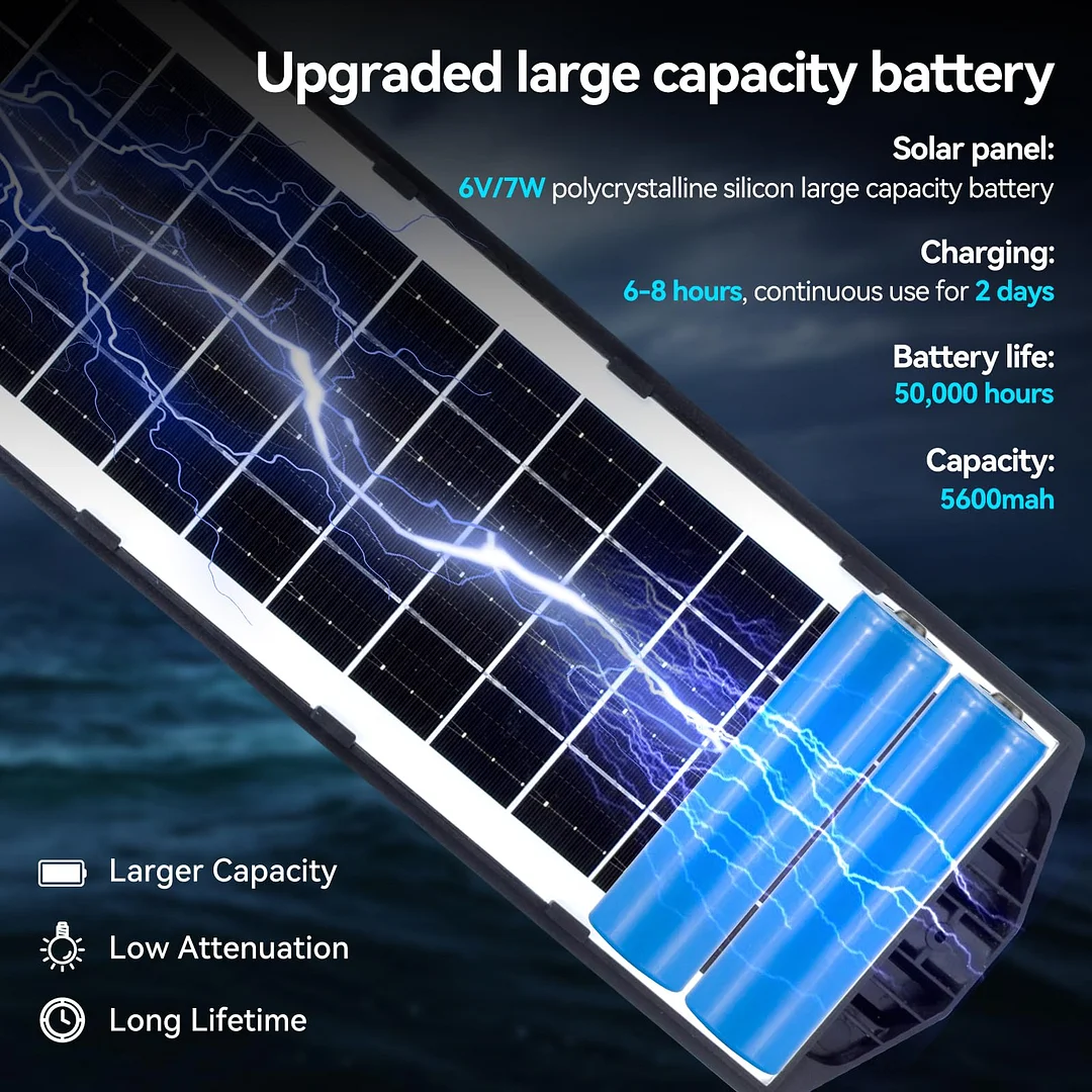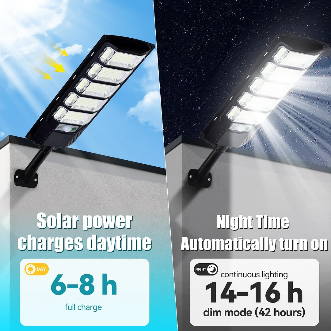 No electricity bill: This solar-powered light automatically recharges with a large solar panel during the day, providing illumination from dusk to dawn without any electricity costs.